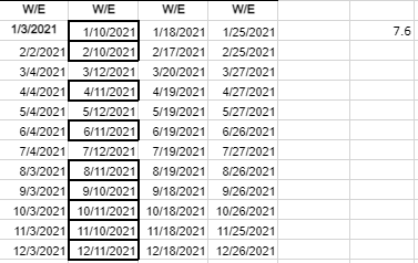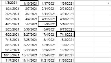 The calendar is not standardized so that each month has the same number of days. This will also make standard deviations of time not work correctly. If you took one day in the month, say the 14th, the 14th of every month will not be the same number of days between any of the other month’s 14th day. The weekly period will need to be adjusted otherwise you will eventually be early on all your bills. This is because the number of weeks and days in each month is not exactly the same, so we need to break out of differentiation. If we make every week period 7 days apart from the last, it will not be consistent, we will get ahead which is not good in this case (left photo), we need to get the Xth day of every month. If you want the budget to be within 3 days of the same Xth of every month we can use 7.6. Make sure the time you pay the bill is sooner than it is due, in case payment does not complete or any other issues that may arise.